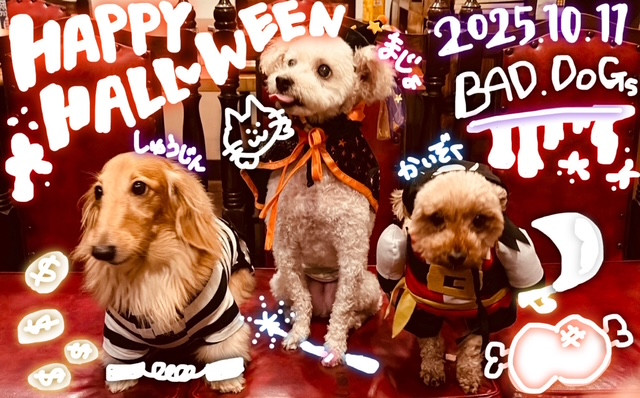 我が家のトイプー2匹と息子の家のダックスでハロウィンパーティーをしました🎃